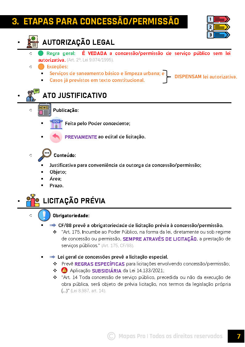 Mapas Mentais e Resumos Esquematizados da Lei da Lei Geral de Concessões.
