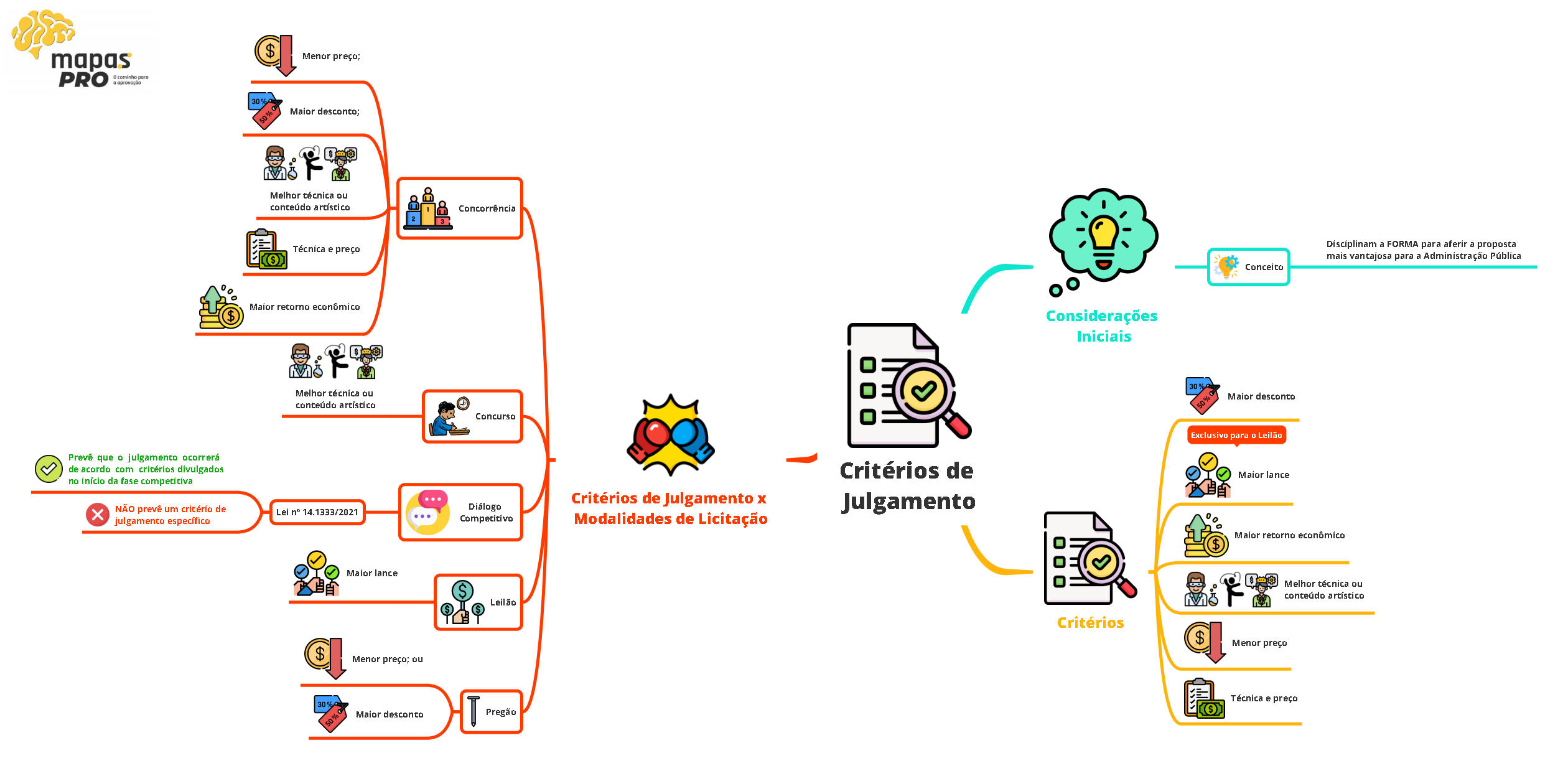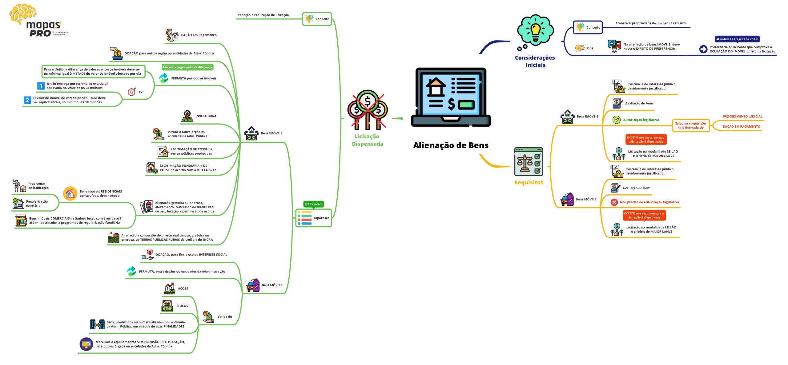 Mapas Mentais e Resumos Esquematizados da Lei de Licitações e Contratos Administrativos.