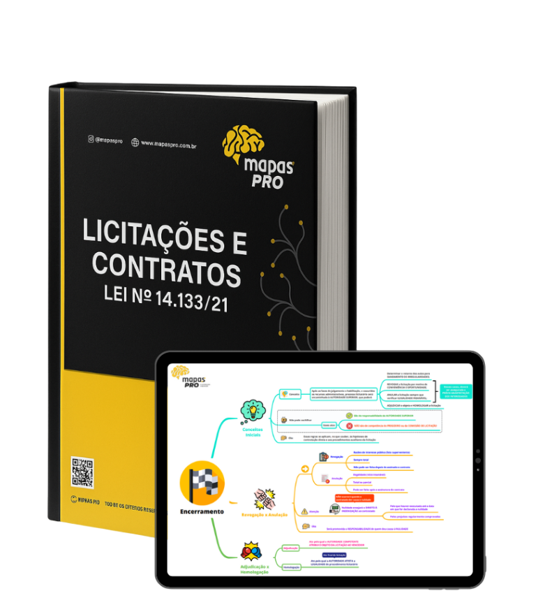 Se você está com pouco tempo para estudar ou revisar, nosso material será sua melhor ferramenta de estudos. Não deixe sua aprovação para a última hora. Adquira agora nosso material de Lei de Licitações e Contratos Administrativos com mapas mentais e resumos esquematizados e dê um passo decisivo rumo à sua aprovação!